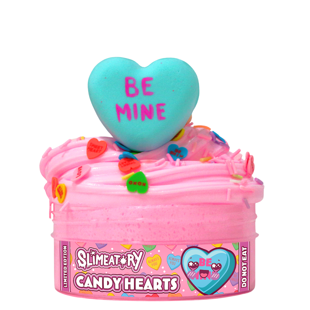 This sweet and charming pink butter slime is filled with mini candy heart charms and topped with a larger candy heart clay piece—capturing all the affection and sweetness of a love-filled celebration!