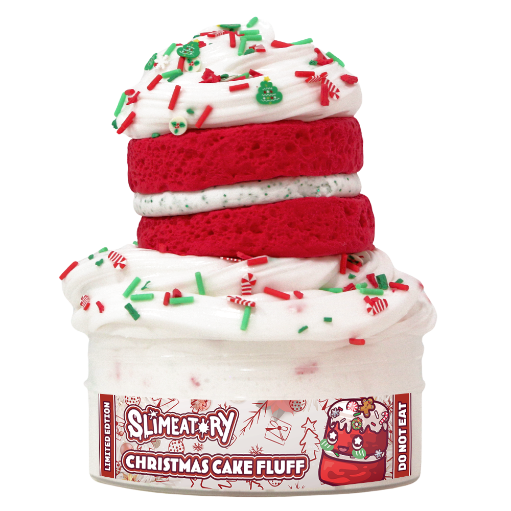 This sugary white butter slime is a freshly baked good frosted to absolute perfection! Topped with a festive red layered cake and sprinkled with holiday cheer, it's a blissful mixture you won't resist!