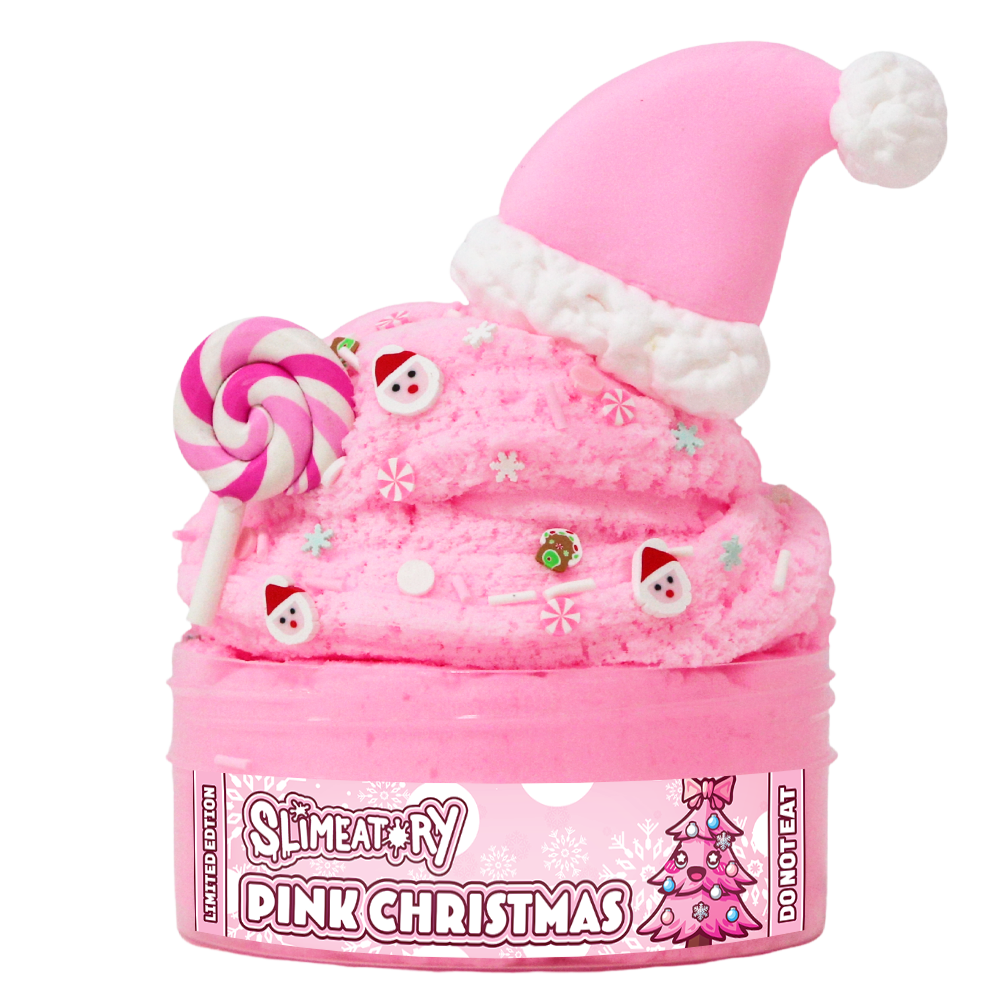 This shimmering pink cloud slime is sprinkled with festive charms, and topped with a delightful pink Santa hat clay piece for a festive flair! Celebrate the season with a rosy twist!
