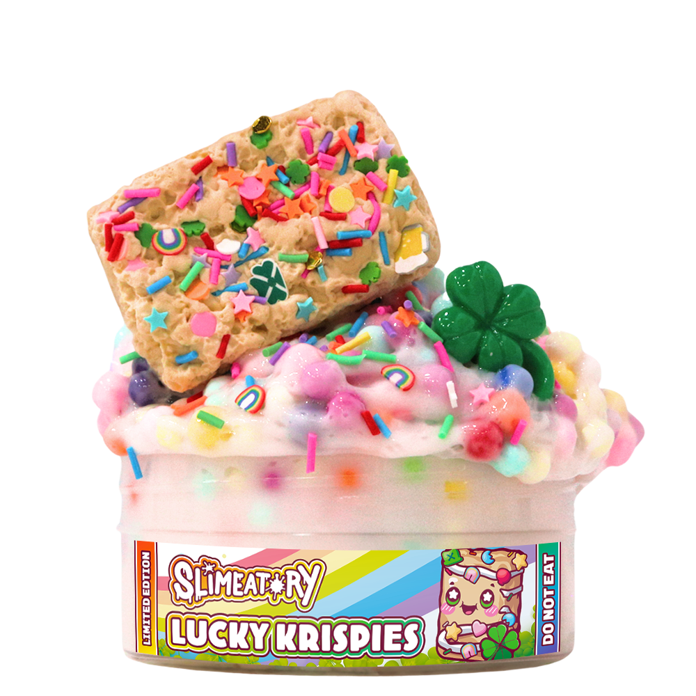 This sweet and crunchy floam slime is packed with colorful foam beads and marshmallow charms that will transport you to a world of sugary bliss! Topped off with a four-leaf clover charm and a krispie treat clay piece, it’s a whimsical treat that’ll make you feel extra lucky!