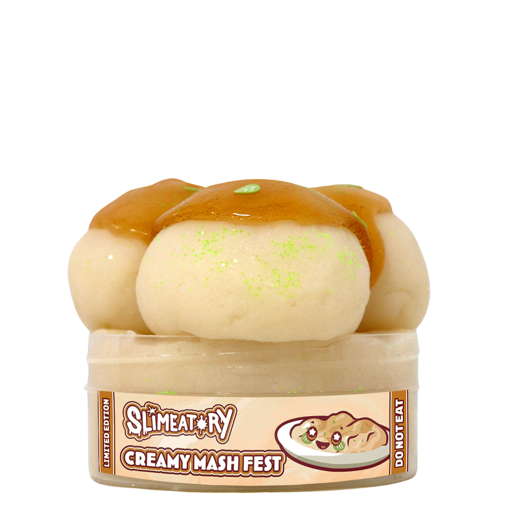 This soft beige cloud slime serves up cozy comfort with a smooth, fluffy texture and rich gravy drizzle! Sprinkled with tiny chive accents, it’s a savory-inspired masterpiece that feels like a holiday dinner in slime form!