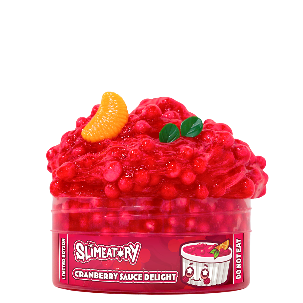 This deep red floam slime pops with texture and tangy flair, just like the classic holiday side dish it’s inspired by! Filled with red foam beads and topped with bright orange slice charms, it’s a sweet and zesty treat that squishes like festive fun!
