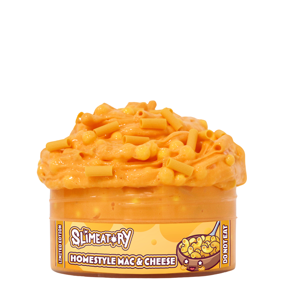 This golden yellow slime melts with comfort in every stretch! Loaded with macaroni charms and a creamy, gooey texture, it’s the ultimate cozy-day slime that channels all the cheesy goodness of your favorite comfort dish—no fork required!