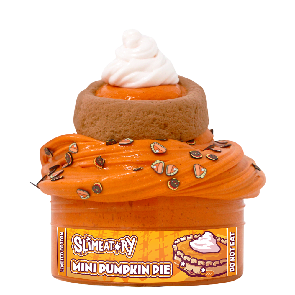 This cozy orange butter slime captures the spirit of fall in every swirl! Layered with a soft whipped cream topping, sprinkled with tiny pumpkin pie details, and finished with a realistic pie slice clay piece, it’s a sweet, creamy delight that feels like autumn in your hands!