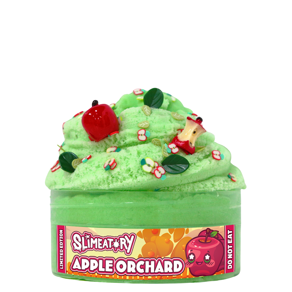 This light green cloud slime captures the crisp charm of fall with leaf sprinkles, apple slice accents, and shiny apple charms! Soft, fluffy, and perfectly orchard-scented, it’s a sweet stroll through rows of autumn apples in slime form!