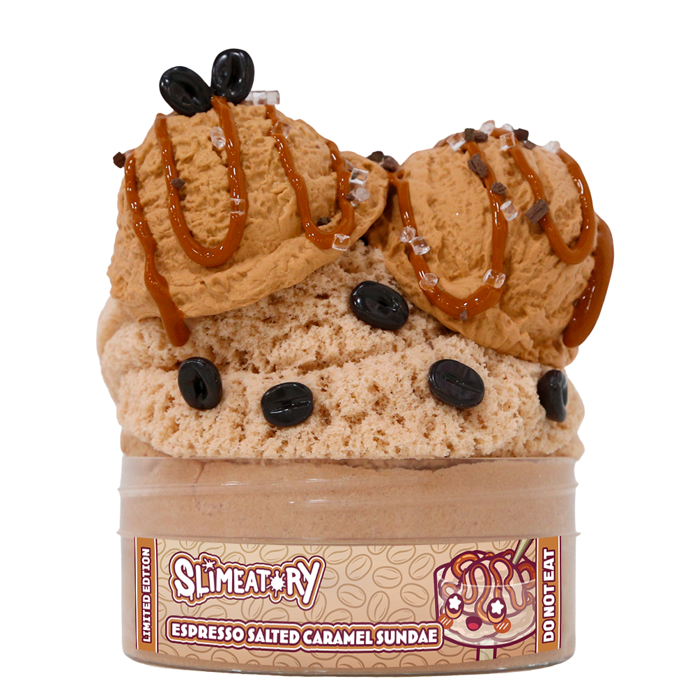 This light brown cloud slime serves up cozy café vibes with coffee bean charms, sparkling ice cube sprinkles, and creamy scoop clay pieces! Drizzled in rich caramel slime, it’s a sweet-meets-salty masterpiece made for coffee lovers and dessert dreamers alike!