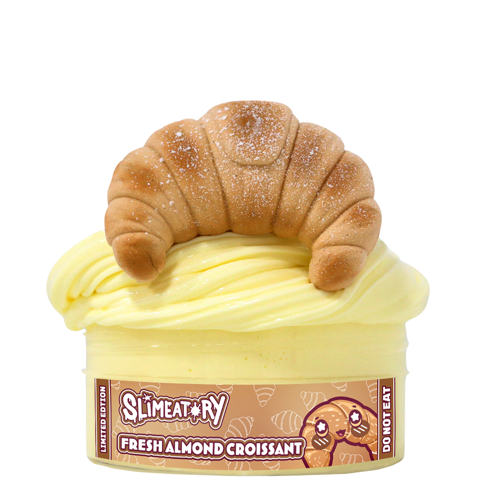 This light yellow butter slime feels like a warm pastry fresh from the oven! Finished with a realistic croissant clay piece dusted in powdered sugar, it’s soft, buttery, and irresistibly savory—just like a morning at your favorite bakery!