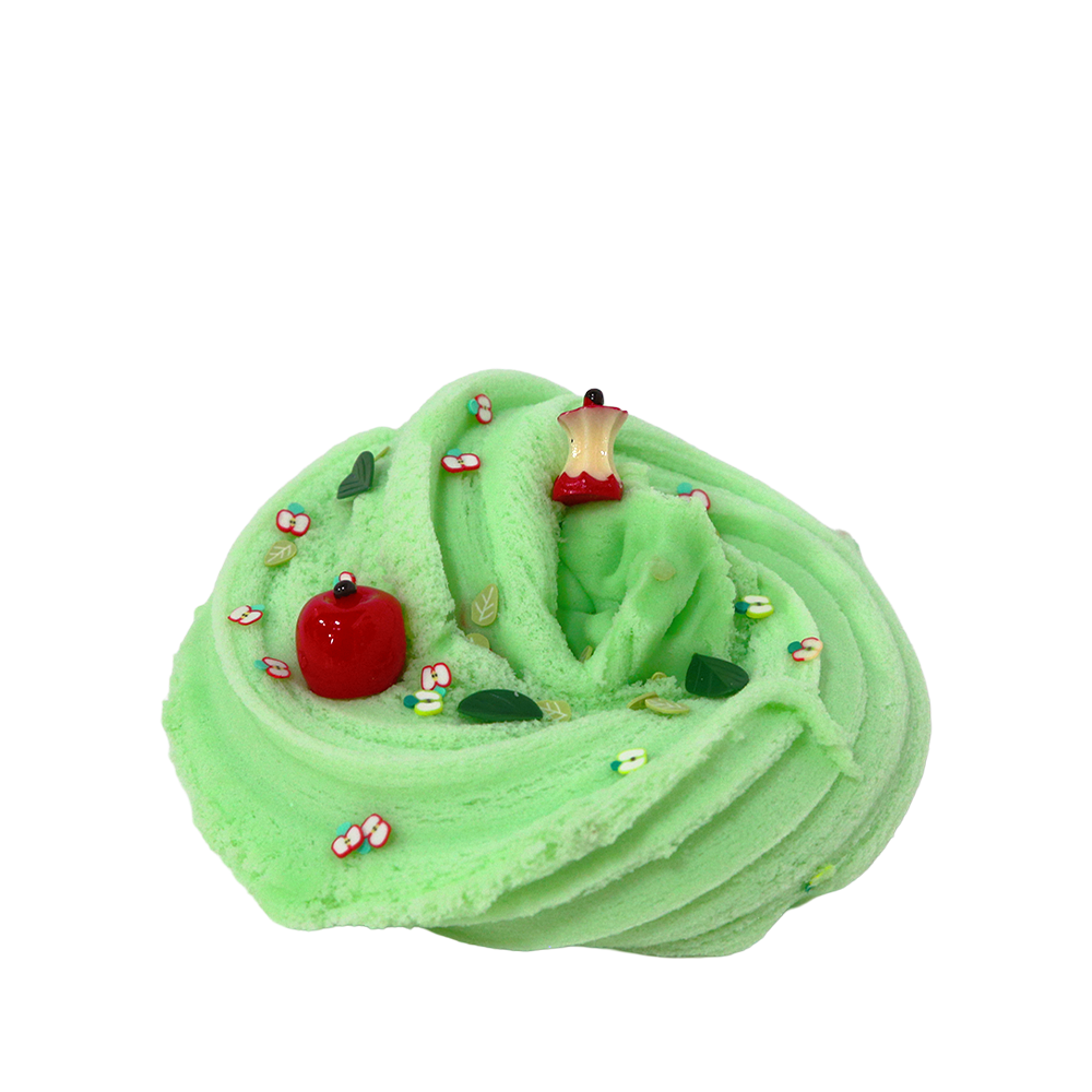 This light green cloud slime captures the crisp charm of fall with leaf sprinkles, apple slice accents, and shiny apple charms! Soft, fluffy, and perfectly orchard-scented, it’s a sweet stroll through rows of autumn apples in slime form!