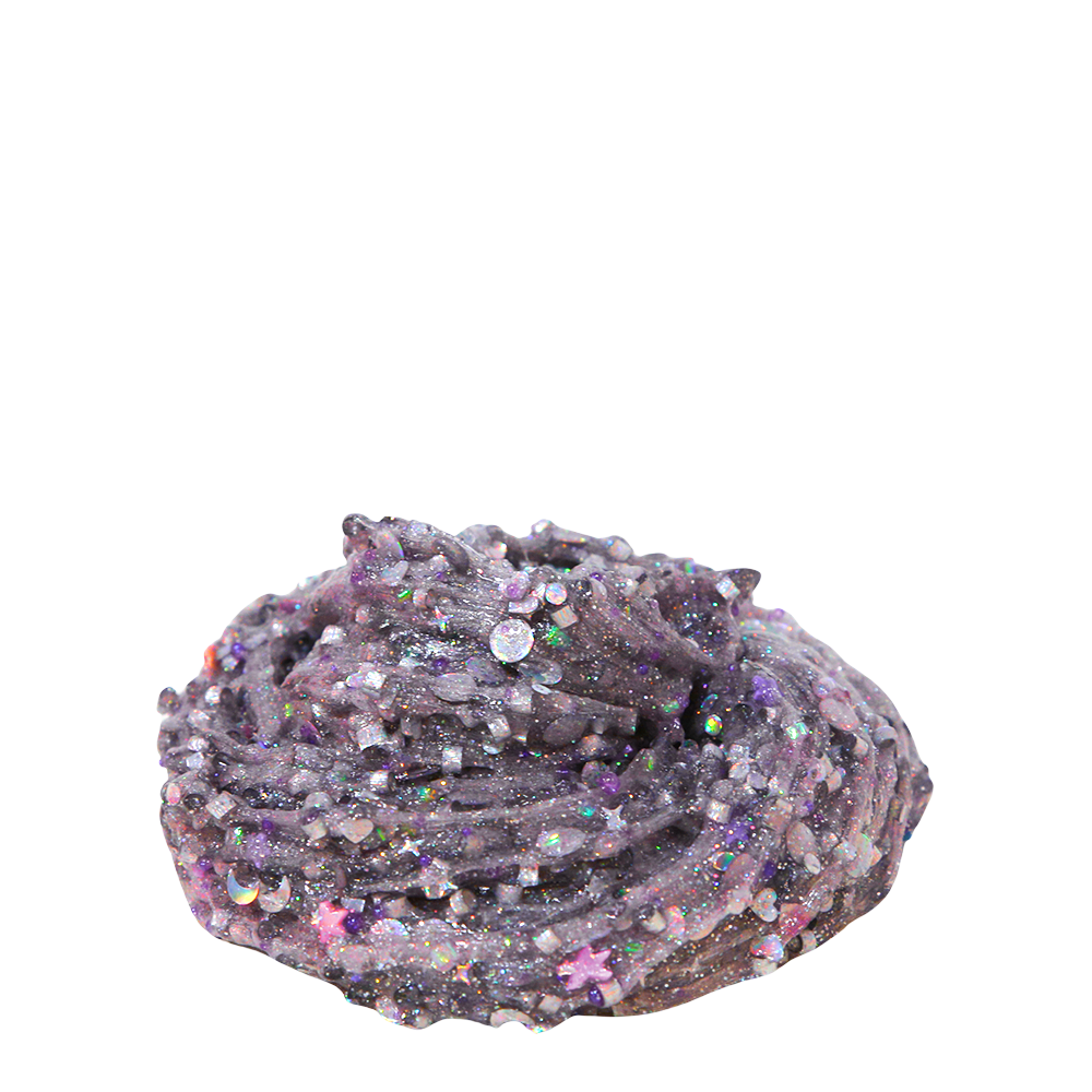 This holographic silver crunchy slime rings in the new year, crowned with a sparkling ball clay piece that captures the magic of the most celebrated countdown! A shimmering celebration in every stretch!