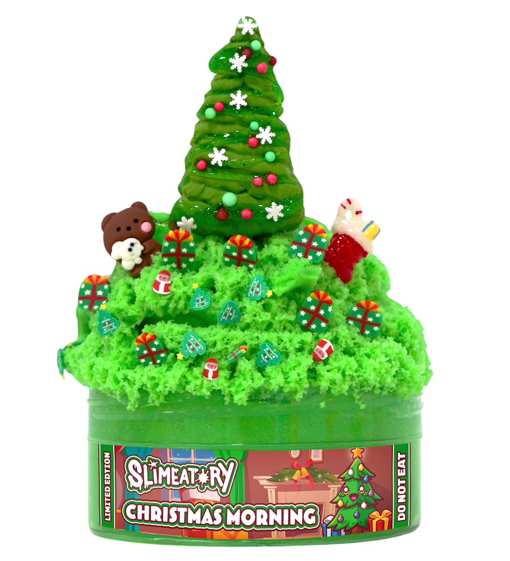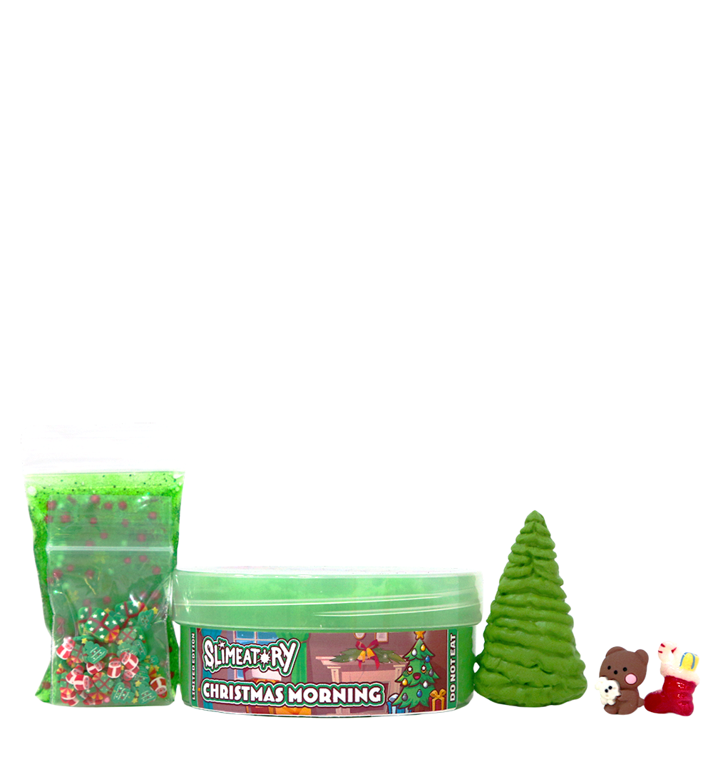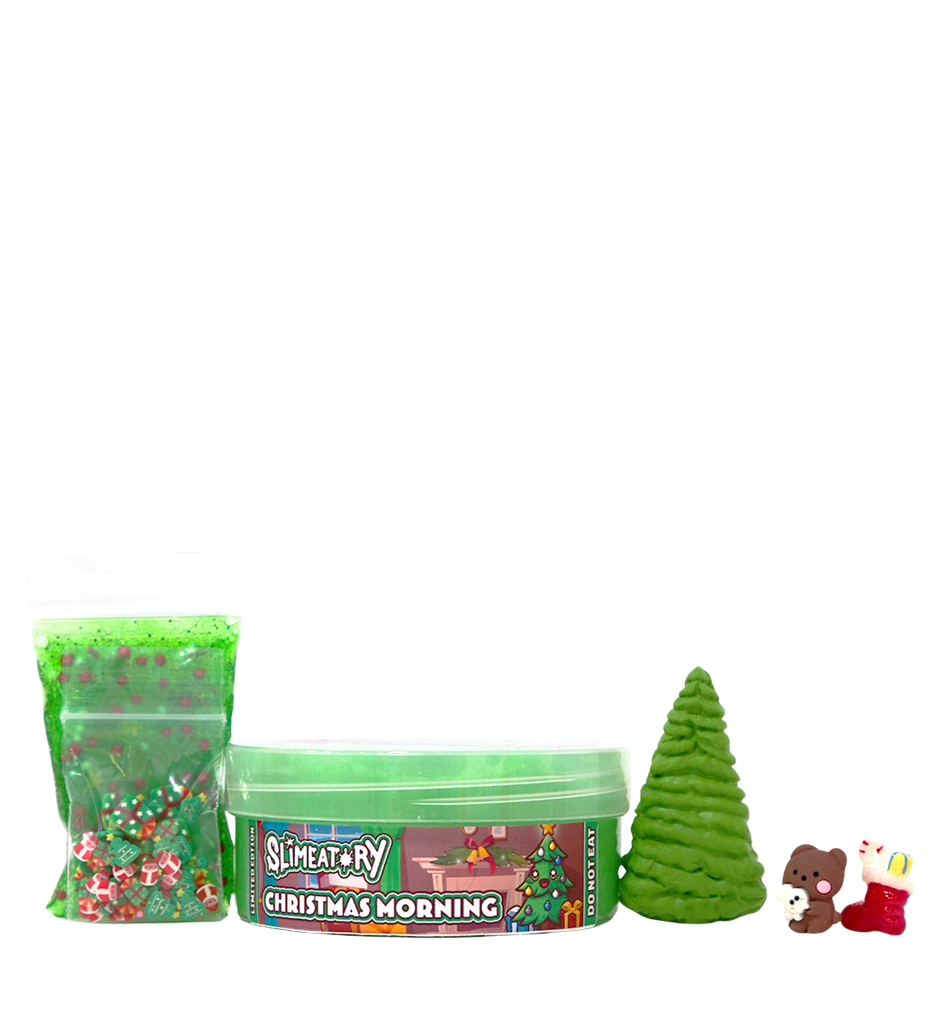 This festive green cloud slime captures the magic of waking up to twinkling lights and wrapped surprises on Christmas morning! Sprinkled with tiny presents and holiday bits and topped with a cheerful Christmas tree clay piece, it’s a merry, gift-filled squish that feels like unwrapping joy!
