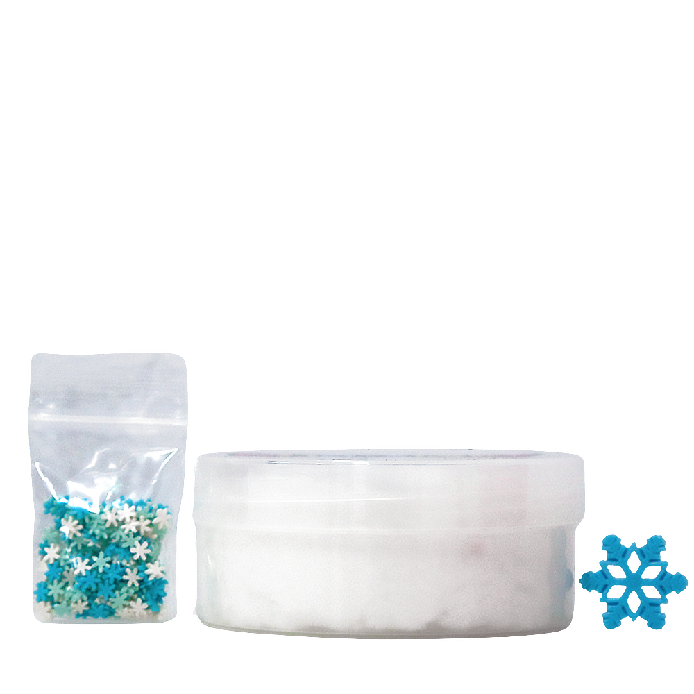 This frosty white cloud slime drifts like freshly fallen snow, sprinkled with delicate blue, and white snowflakes for the perfect wintry shimmer! Finished with a soft blue snowflake charm, it’s a chilly, cozy squish that feels just like a peaceful snowfall!