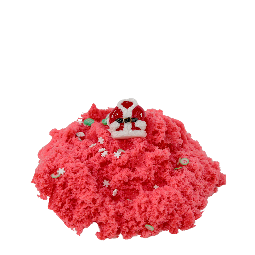 This red and white swirled cloud slime shines with festive cheer, sprinkled with holiday magic and topped with a jolly Santa coat charm! Finished with a merry Santa hat clay piece, it’s a sweet, swirly treat worthy of the Nice List itself!