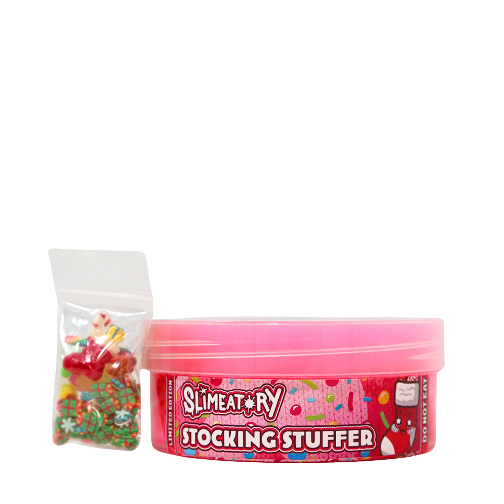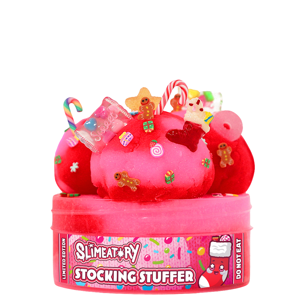 This red and pink swirled cloud slime bundles together a plethora of treats! Stuffed with candy charms and sprinkles, unwrap the sweet surprises in your holiday stocking!
